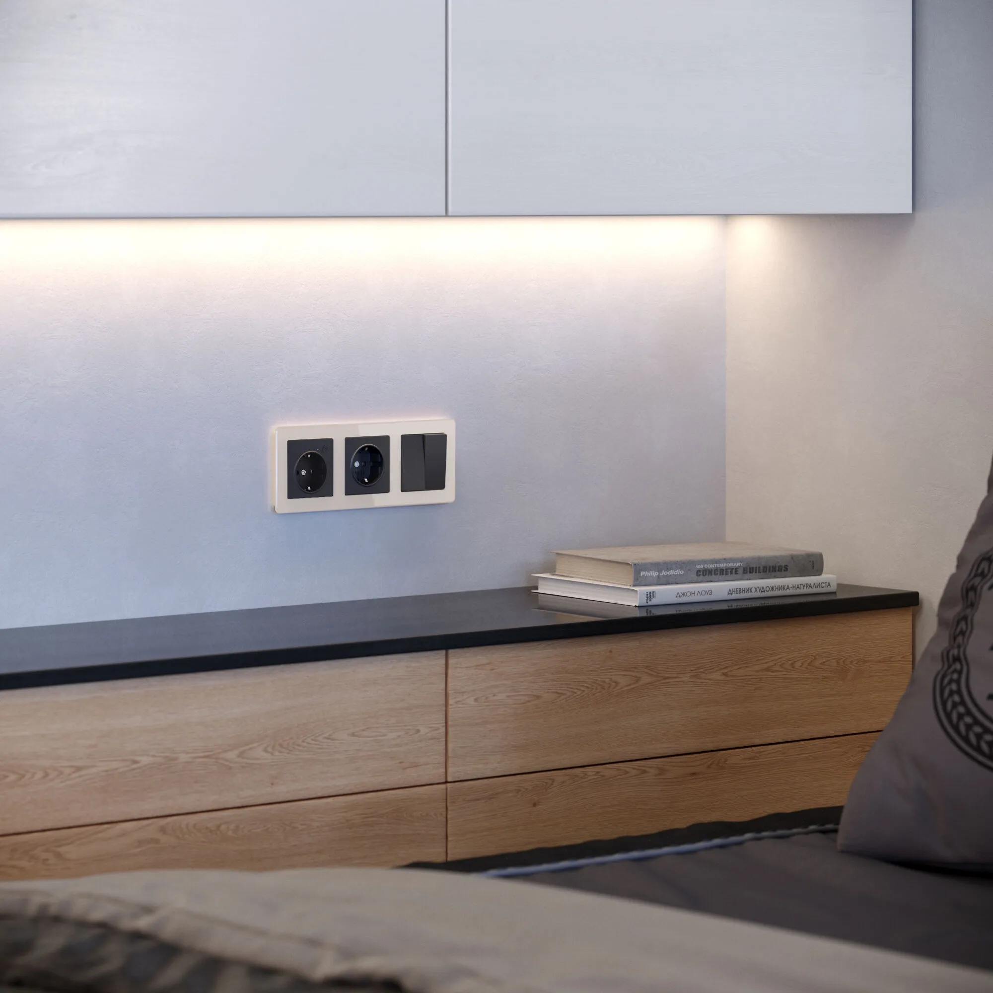 • Полная совместимость со всеми механизмами Werkel — выключателями, розетками, диммерами, сенсорными панелями и другими устройствами. Это открывает безграничные возможности для персонализации: от минимализма до нео-арт-деко.